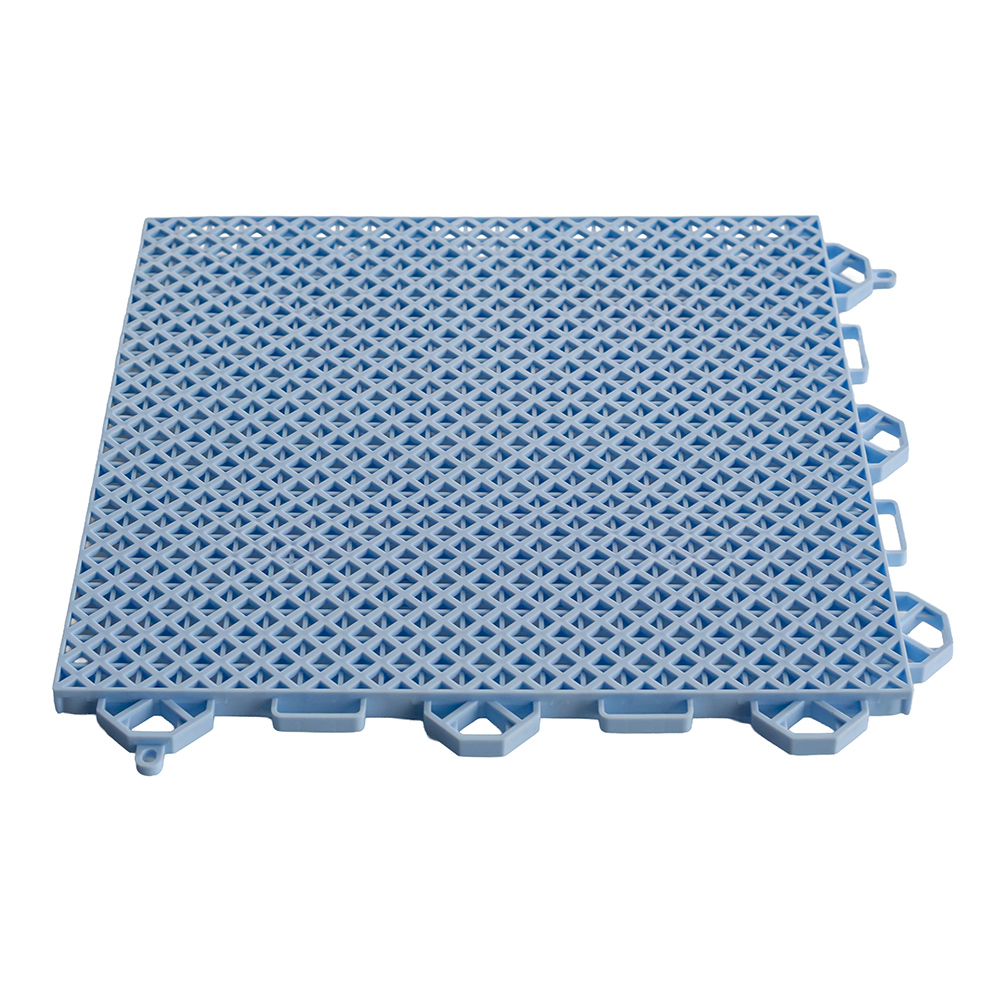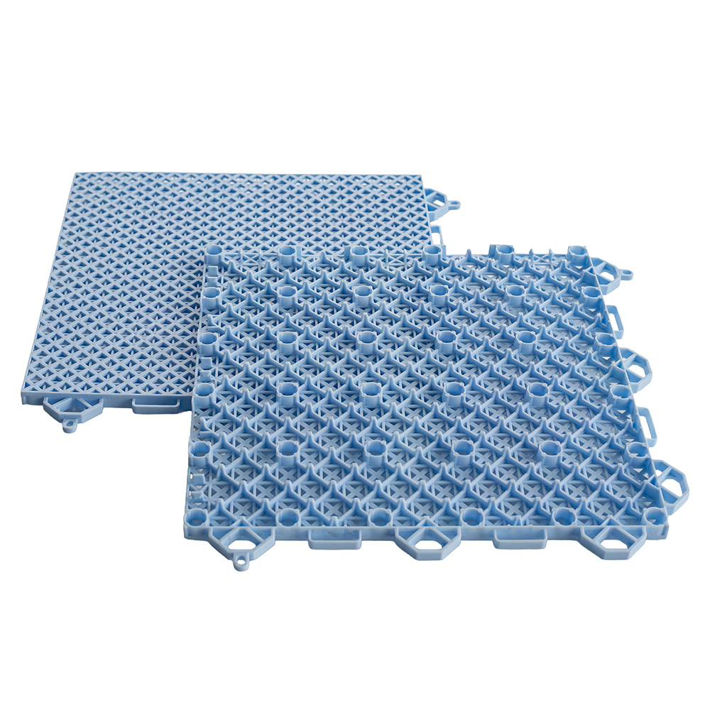 Polipropylenowa nawierzchnia modułowa, wytwarzana przez formowanie wtryskowe w postaci odpornych na uderzenia płytek z tworzywa sztucznego.