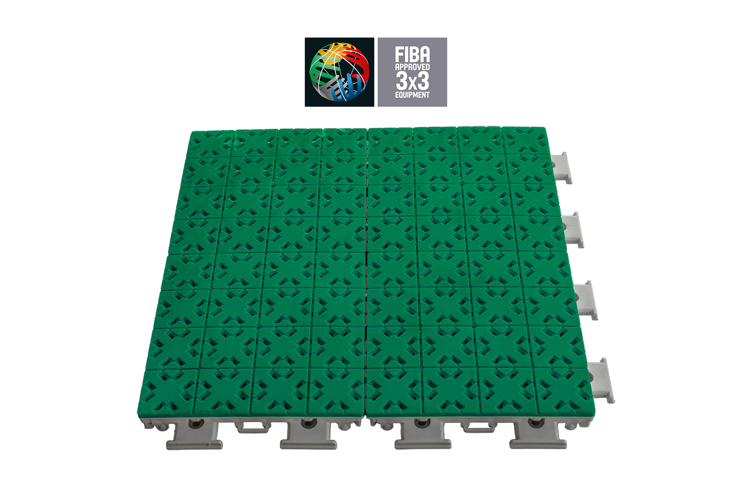 Specjalistyczna mieszanka kopolimeru polipropylenowego odpornego na uderzenia oraz elastomer poprawiający amortyzację pionową (wynoszącą 30%) i współczynnik tarcia. Dodatek absorberu UV oraz antyutleniacza zapewnia ochronę przed utratą koloru, degradacją i utlenianiem tworzywa sztucznego. Płytki posiadają także dodatki antystatyczne redukujące nagromadzenie ładunków elektrostatycznych na użytkownikach boisk.